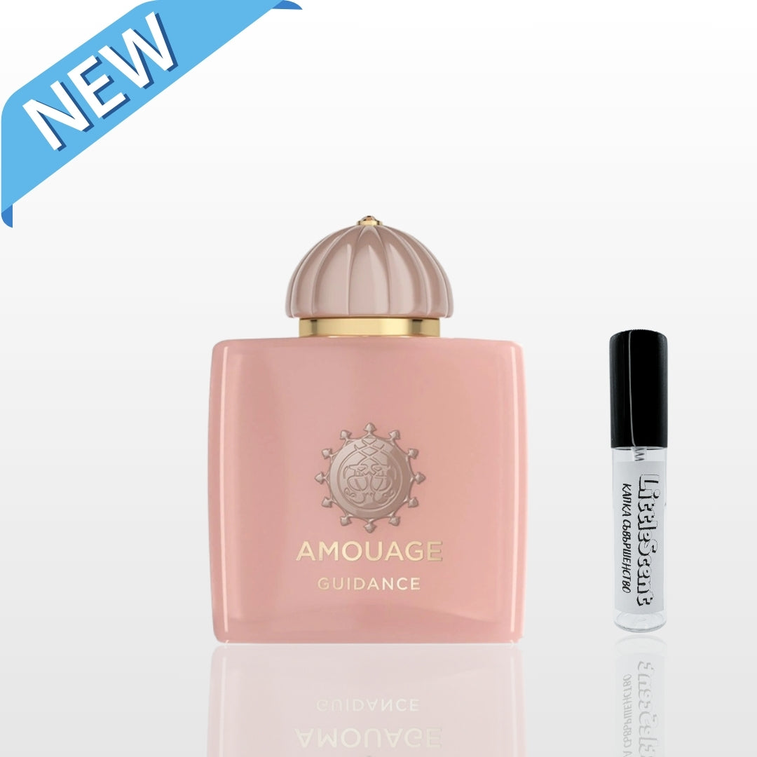 Amouage Guidance е унисекс парфюм, лансиран през 2023 година и създаден от майстора-парфюмерист Куентин Биш (Quentin Bisch). Вдъхновен от мистиката на вътрешното пробуждане и пътя към себепознанието, този аромат е чувствено пътешествие през богати текстури, контрасти и хармонии. Композицията се разгръща с неочаквана мекота и дълбочина. Още в началото крушата придава сочна сладост, която се среща с топлия, земен характер на лешника и фината опушеност на тамяна. Този контрастен увод създава чувствено напрежение, което води към сърцето – комплексен и многопластов букет от османтус, роза, шафран и жасмин самбак. Тук флоралната изтънченост среща ориенталска пикантност и плодова мекота, създавайки ефирна, но богата среда.