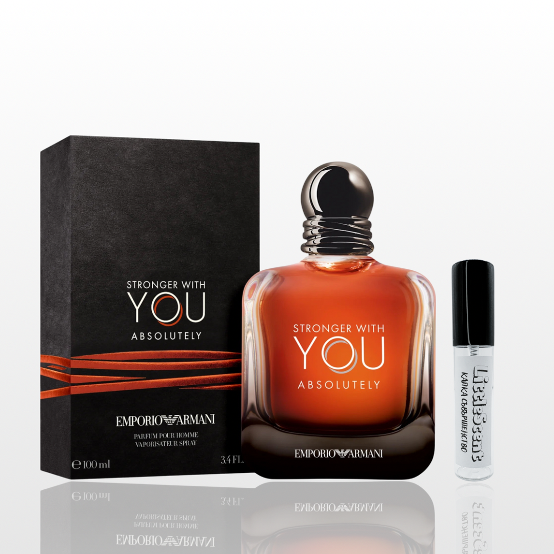 Giorgio Armani Emporio Stronger With You Absolutely е луксозен мъжки парфюм с ориенталски аромат, създаден през 2021 година от парфюмната линия на италианската модна къща Giorgio Armani. Чувствен и мъжествен, този аромат е продължение на известния парфюм Giorgio Armani Emporio Stronger With You от 2017 година. Това е примамлив и вълнуващ парфюм - "Символът на абсолютната любов!". Ароматът се отваря с искрящи освежаващи цитрусови зелени акорди на бергамот, фин затоплящ пикантен акцент на слънчев ром и ориенталски нотки на елеми, които се преплитат в „сърцето“ на Giorgio Armani Emporio Stronger With You Absolutely с тръпчиви пикантни нотки на даван и опияняващ аромат от цъфтяща зелена лавандула. Смолист кремообразен иглолистен кедър, ориенталски нотки на пикантно пачули и съблазнителна сладка бърбън ванилия, съчетани с глазиран кестен, допълват грандиозния мъжки аромат.